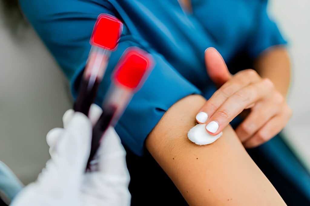 • Kol damarından kan örneği alınır: Küçük bir kan örneği alınır ve işlem genellikle birkaç dakika sürer.
